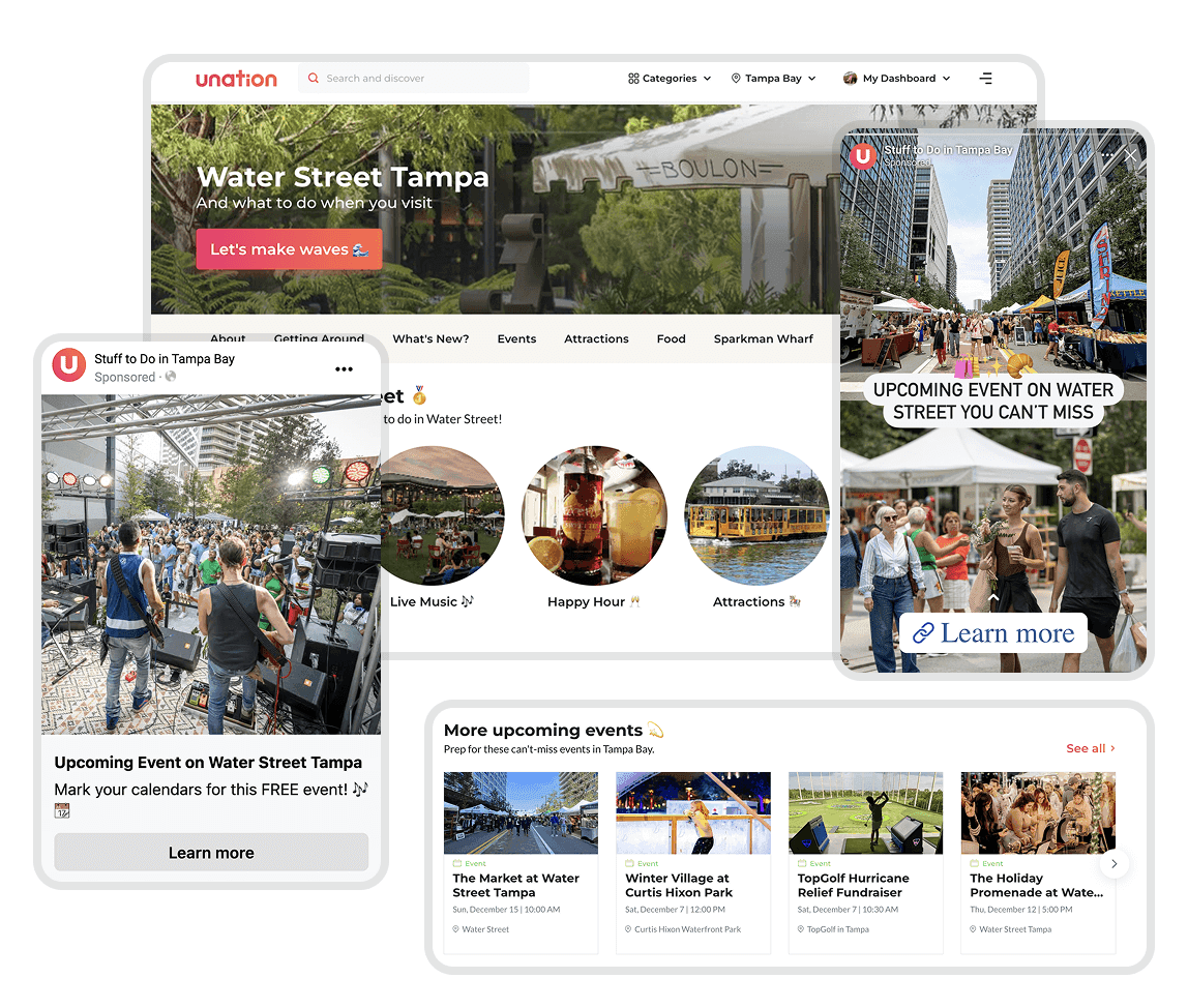 Water Street Tampa wanted to position itself as the go-to destination for events in Tampa Bay. With a diverse range of events—including music series, art fairs, Sunday markets, and seasonal celebrations—they needed a long-term strategy to consistently attract attendees and foster community involvement.